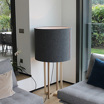 Лампы Torch — особый предмет для гордости испанского бренда. Ножки сделаны из натурального бука, обработанного вручную. Швы на абажуре также ручной работы.