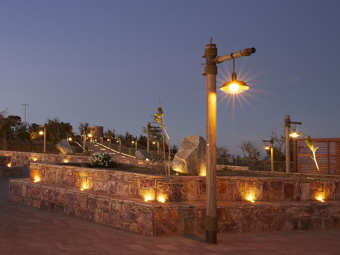 Другой материал, который активно использует фабрика — это Accoya Wood. Он получен из устойчивой быстрорастущей древесины с помощью процесса ацетилирования, в результате получается высокоэффективное и экологически чистое сырьё. Оно обладает превосходной устойчивостью к воздействию воды и гниению. Accoya сертифицирован FSC и имеет Золотую аккредитацию Cradle to Cradle Certified, прошёл сертификацию Material Health и оставляет минимальный углеродный след. Эта исключительная древесина используется для производства боллардов, опорных столбов и т.д. Светильники получаются удобными, прочными и красивыми благодаря уникальному оттенку.