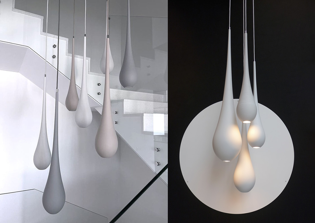 Другая коллекция Bloomboom — Drop — отличается минималистичным силуэтом и чистотой линий. Подвесы напоминают природные минералы и производятся методом ротационного формования из полиуретановой смолы. В конструкции используется качественный текстильный кабель итальянского производства. Лаконичная форма светильников позволяет создавать из них множество различных композиций, которые легко адаптировать под конкретный интерьер.