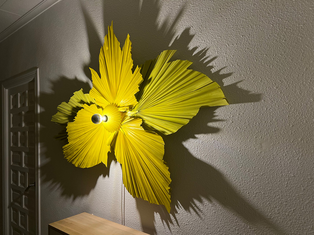 Мастера Bloomboom вручную собирают объекты в своём ателье под Парижем, соединяя традиционное ремесло и новые технологии. В коллекции BLOOM TROPICAL, созданной Irma BIRKA, используются листья пальмы. Листья окрашивают в яркие цвета, фигурно вырезают, превращая в органические световые скульптуры. Светильники были частью известных инсталляций, например: в феврале 2026 года светящиеся цветы украсили форум в Grand Palais в рамках архитектурного проекта бюро Karawitz и Pierre Chomette.