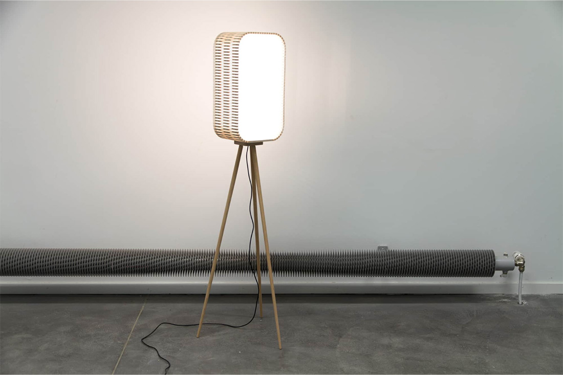 Светильник dukta LUMBRA изготавливают из берёзовой фанеры. Модель используют без опор или устанавливают на ножки, превращая в настольную лампу или торшер. Встроенные светодиоды в сочетании с сатинированным акриловым стеклом создают мягкое и равномерное освещение. Благодаря фирменным пропилам на деревянном полотне при включённом свете возникает красивая игра теней.