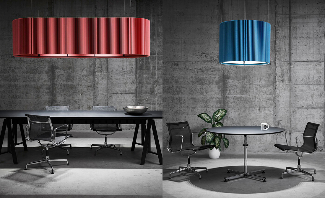 Светильник ECHOJAZZ из серии EchoLED UMBRA разработан для освещения и поглощения шума в помещениях с высокими потолками над рабочими местами. На изготовление одного абажура уходит около 5 квадратных метров материала EchoBoard. Модель оснащена световым модулем EQ4 от Bartenbach с поддержкой цифрового управления. Для комфортного освещения производитель рекомендует вешать светильник на расстоянии не менее 170 см от поверхности стола. Массивный корпус эффективно поглощает шум, при этом функциональный осветительный прибор становится красивым центральным элементом интерьера.