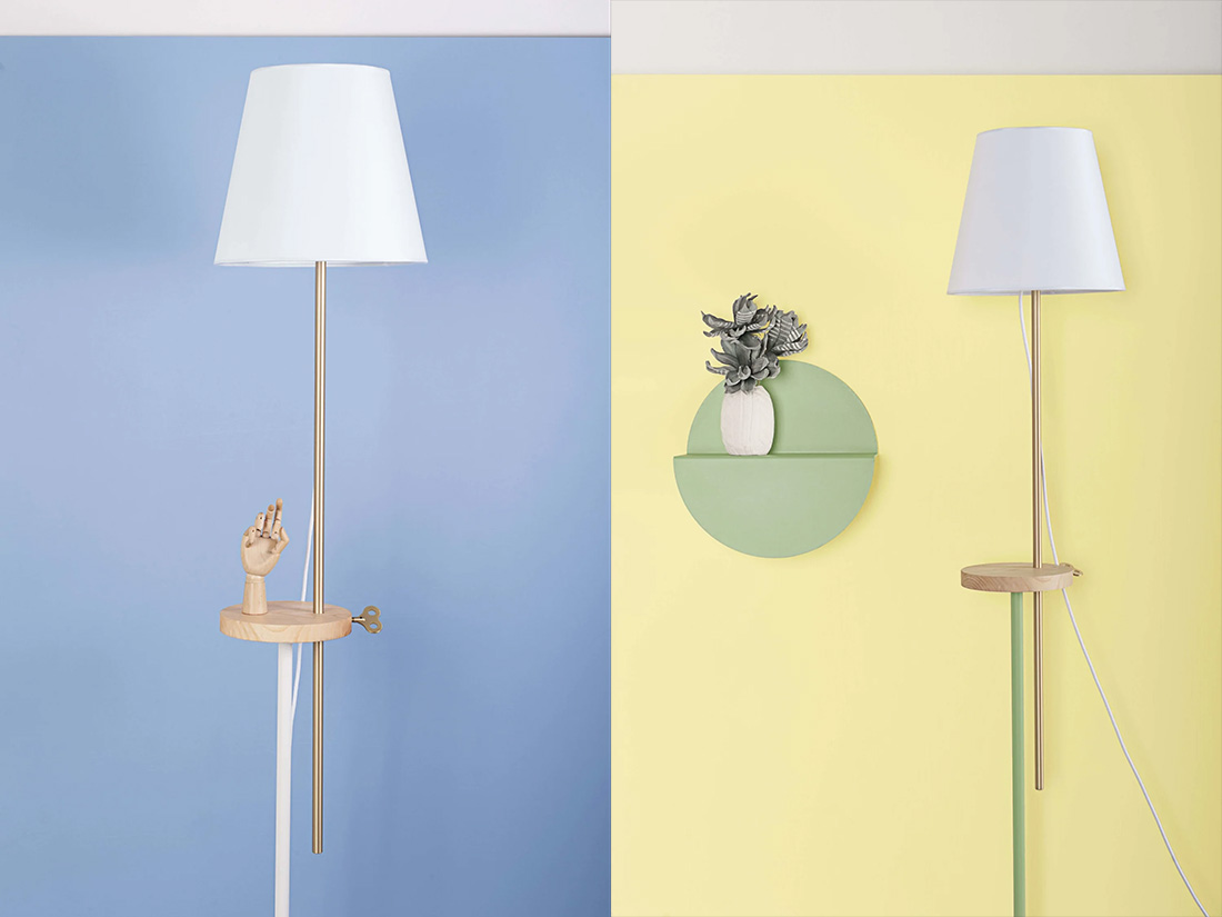 Торшер Formae Camilla выполнен из ясеня, стали и латуни. Центральная опора оснащена полкой, которая служит подставкой для мелочей и одновременно фиксатором для источника света. С помощью латунного зажима в форме ключа высоту лампы можно легко регулировать: либо поднять для общего освещения комнаты, либо опустить пониже, чтобы было удобно читать на диване.