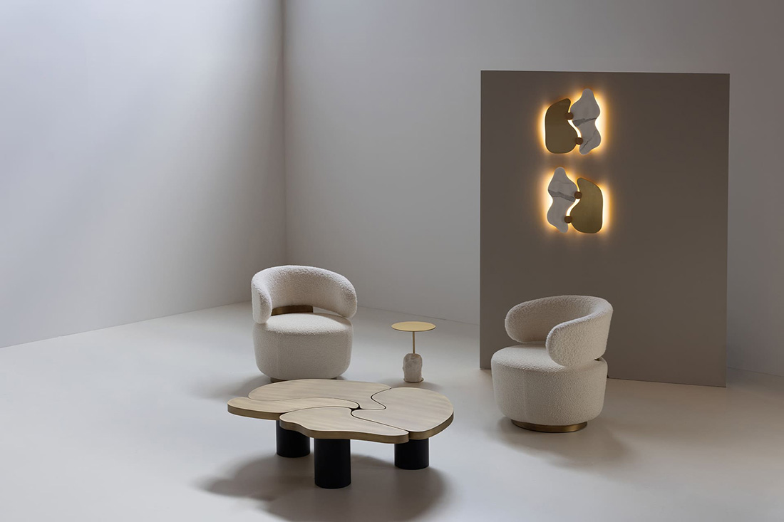 При создании настенного светильника Greenapple Rossim Marble Sconce команда Greenapple вдохновллялась природными линиям долины Россим в горах Серра-да-Эштрела. В основе дизайна бра лежит сочетание фактур: матового мрамора Statuario, шлифованной латуни и элементов из массива белого американского дуба. Органический силуэт дополнен скрытыми светодиодными источниками света, благодаря которым мягко проявляется текстура камня и дерева.