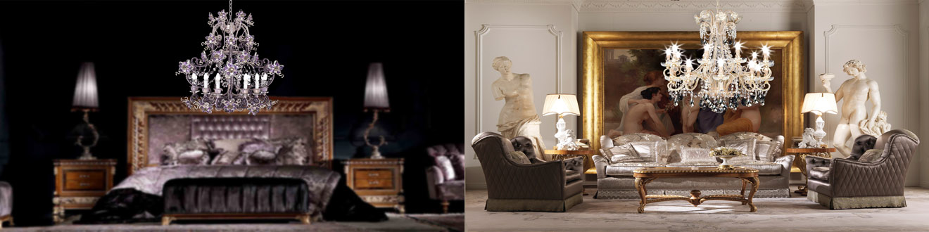 Что же касается отделки, то здесь Mechini не терпит каких-либо ограничений. В стремлении создать настоящий шедевр используются только самые лучшие техники и материалы, это покрытие сусальным золотом и серебром, роспись темперными красками, а также наличие в композициях богемского хрусталя, муранского стекла, итальянского фарфора и известных на весь мир страз Swarovski. Мастера вкладывают в свои работы всю любовь и страсть к искусству и ремеслу, которая в них есть, поэтому светильники Mechini и получаются настолько по-итальянски экспрессивными и поражающими своим великолепием.