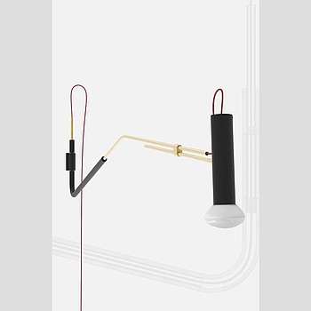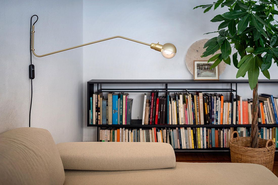 Бра BRS03 изготовлено из латуни. Изогнутую ножку светильника можно поворачивать на 180°. Источником света служит светодиодная лампочка с диаметром 10 см.