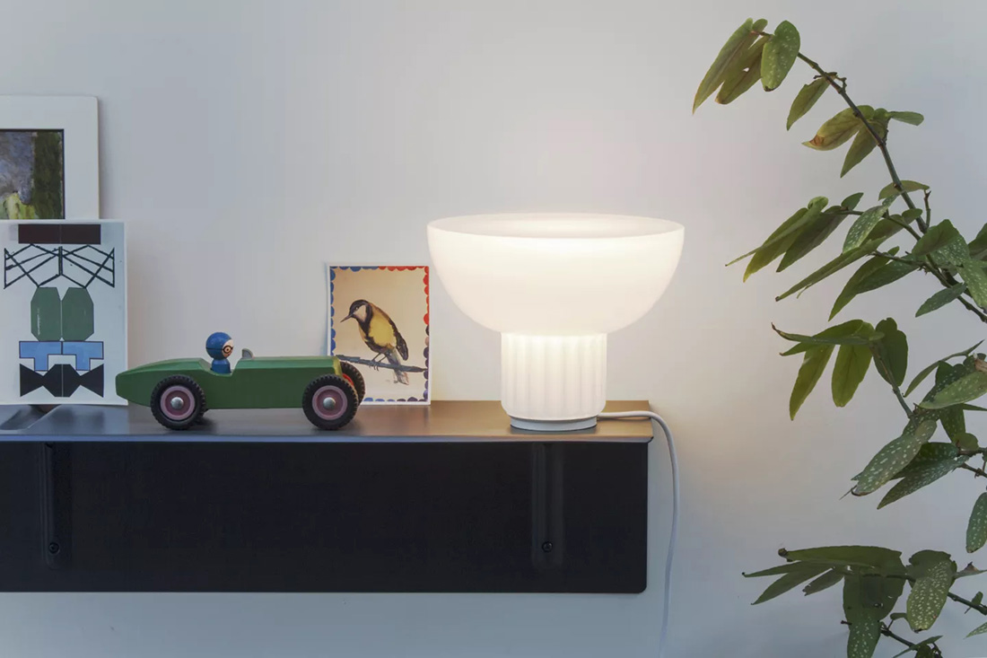 Серия STANDARD — интерпретация классического промышленного светильника. Вместо металлических деталей используется цельный корпус из выдувного стекла — технически сложное решение для такого масштаба. Белое опаловое, дымчатое или прозрачное стекло смягчает индустриальный силуэт. В коллекции есть подвесы и настольные лампы.