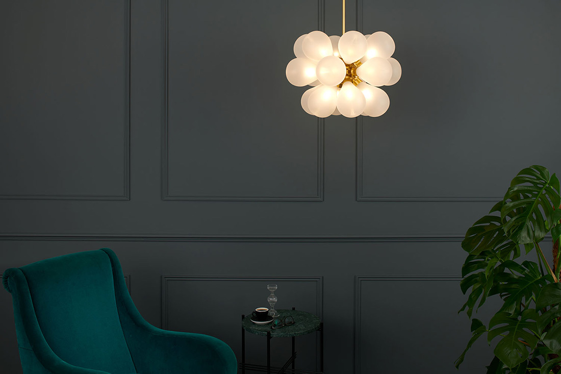 Один из ярких примеров работ Tom Kirk Lighting — люстра Cintola Maxi Pendant из металла и стекла. Это светильник ручной работы в стиле ар-деко. Корпус вытачивают из алюминия и наносят покрытие: полированный алюминий, сатинированную бронзу или сатинированное золото. У стекла для этой модели есть три варианта расцветки: матовая, бронзовая или дымчато-серая.