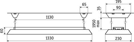 Монтируется на поверхность потолка на тросовых подвесах, система подвесов входит в комплект.