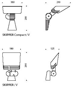 Светильник Skipper подходит для освещения витрин, архитектурных элементов зданий, рекламных поверхностей, охранного освещения.