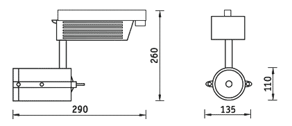 Светильник устанавливается непосредственно на трехфазный шинопровод euro-DIN с помощью универсального адаптера.