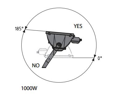 - Прожектор спроектирован для установки на мачтах освещения на высоте 50-70 м над освещаемой поверхностью.