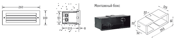 Встраивается в стены (ступеньки) с помощью пластикового монтажного бокса (поставляется