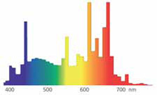 Способствует протеканию процессов фотосинтеза в растениях. Используется в помещениях с недостаточным естественным освещением, а также в цветочных магазинах и для подсветки аквариумов.