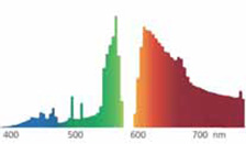 Современный тип ламп, обеспечивающий своеобразный теплый белый цвет с насыщенным красным оттенком. Эти разрядные лампы широко используются в гипермаркетах для освещения хлебобулочных и мясных продуктов, в магазинах мебели и в цветочных магазинах. Индекс цветопередачи CRI = 80 при цветовой температуре 2550К.