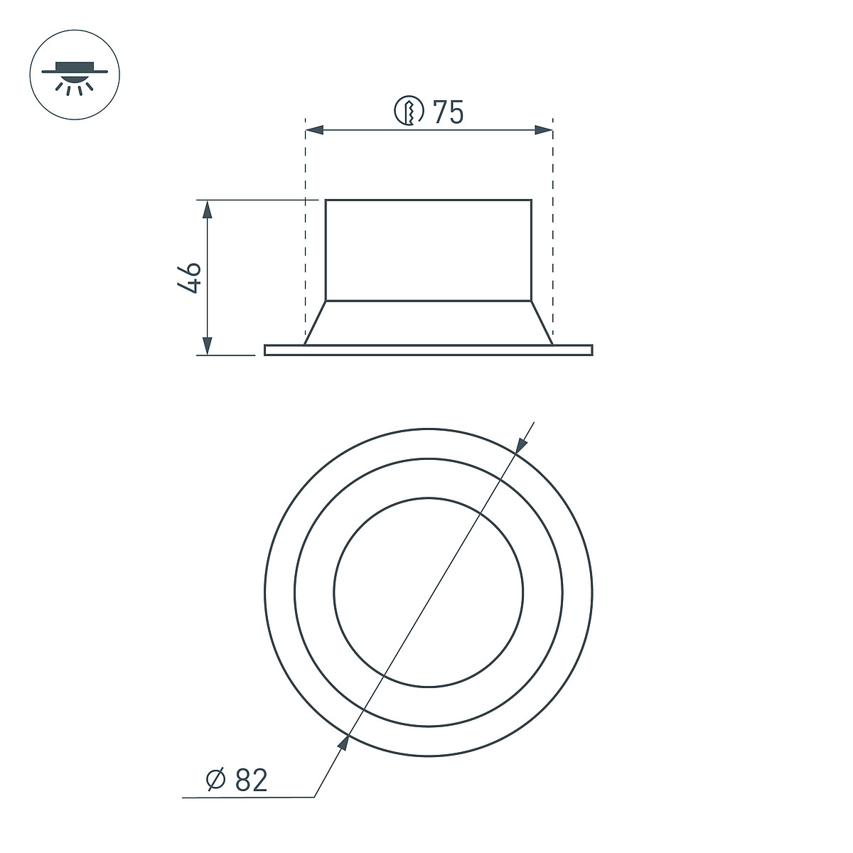 | Вырезное отверстие: | Ø75 мм |