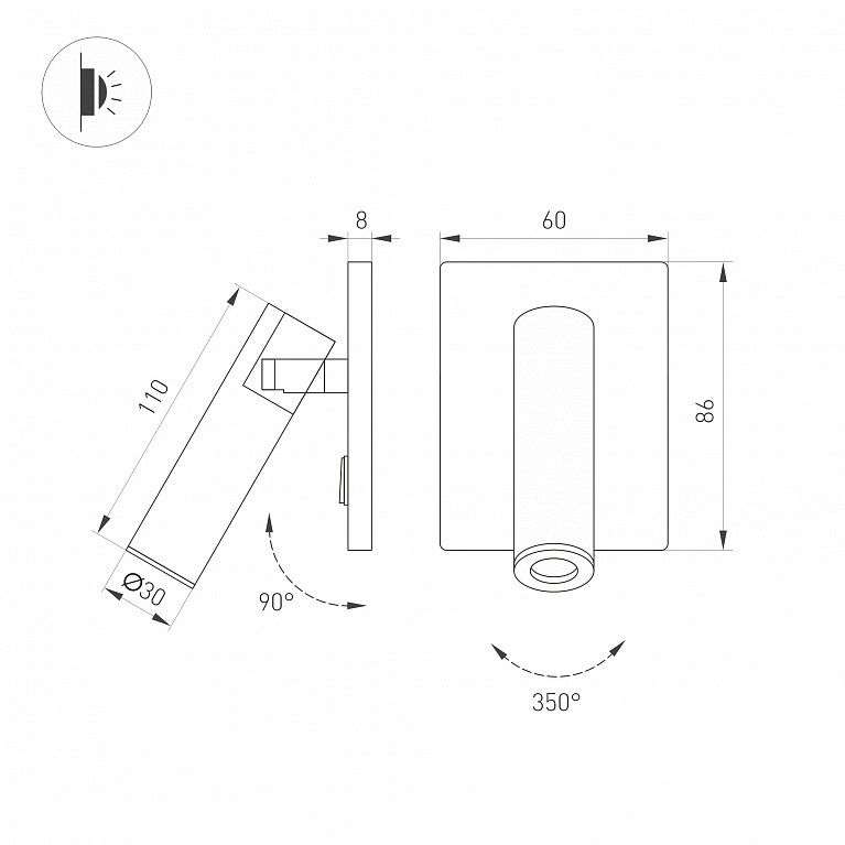 Светильник Arlight SP-READER-S60x86-3W Warm2700 (BK, 20 deg, 230V, IP20 Металл) 052938