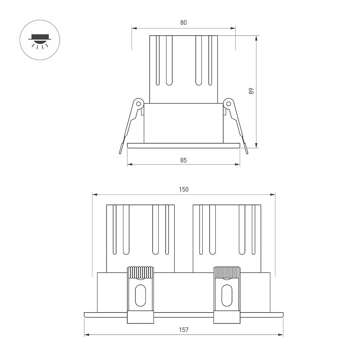 Светильник Arlight MS-FLOW-BUILT-S157x85-2x6W Warm3000 (BK, 55 deg, 230V, IP20 Металл) 061267