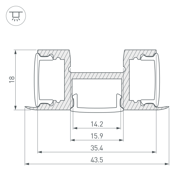Алюминиевый анодированный накладной профиль с трехсторонним свечением, для светодиодных лент и линеек. Габаритные размеры (LxWxH): 2000x43,5x18 мм. Ширина площадки для ленты 12 мм. Экраны, заглушки и другие аксессуары приобретаются отдельно. Цена за 1 метр.Другие модели серии