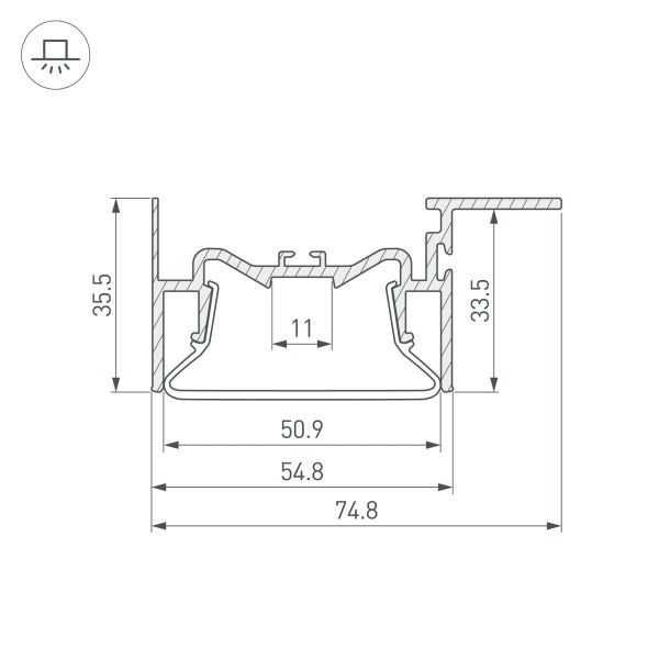 Алюминиевый профиль для натяжных потолков (боковая линия - монтаж к потолку). Решение 2-в-1 - каркас для крепления натяжного потолка и профиль для установки светодиодной ленты. Для дизайнерских решений «линии света» в натяжных потолках. Монтируется к потолку, накладной способ. Натяжной потолок крепится к профилю с одной стороны. Габаритные размеры (LxWxH): 2000x75x36мм. Ширина площадки для ленты 11мм. Экраны, заглушки и другие аксессуары приобретаются отдельно. Цена за 1 метр.Другие модели серии