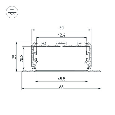 Алюминиевый анодированный встраиваемый профиль для светодиодных лент и линеек. Габаритные размеры (LxWxH): 2000x66x25 мм. Ширина площадки для ленты 48 мм. Экраны, заглушки и другие аксессуары приобретаются отдельно. Цена за 1 метр.Другие модели серии