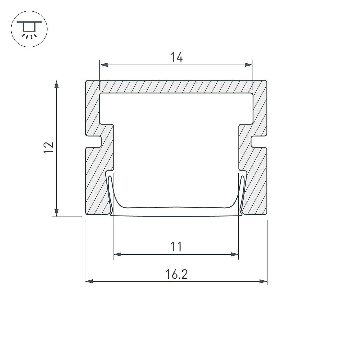Алюминиевый профиль для светодиодных лент и линеек. Цвет - белый RAL9010 (порошковая окраска). Габаритные размеры (LxWxH): 2000x16,2x12 мм. Ширина площадки для ленты 14 мм. Экраны, заглушки и другие аксессуары приобретаются отдельно. Цена за 1 метр.Другие модели серии