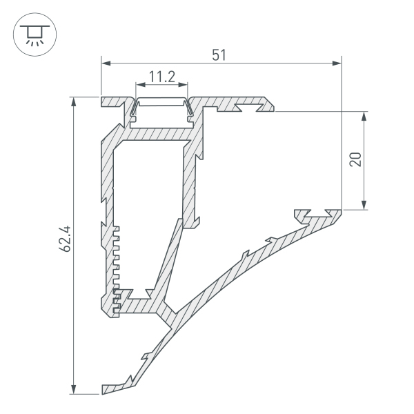 Алюминиевый анодированный профиль для монтажа и подсветки полок из стекла, пластика, дерева толщиной от 6 мм до 20 мм. Максимальная ширина полки 25 см. Максимально допустимый вес: 5 кг на каждые 30 см длины. Свечение в двух направлениях: подсветка стекла, подсветка прилегающей стены (наверх). Габаритные размеры (LxWxH): 2000x51x64 мм. Ширина площадки для ленты 11,2 мм. Заглушки и другие аксессуары приобретаются отдельно. Цена за 1 метр.Другие модели серии