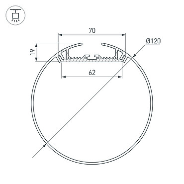 Профиль с экраном Arlight SL-ROUND-D120-2500 ANOD+OPAL (Алюминий) 020475