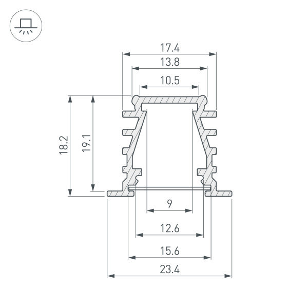 Алюминиевый анодированный встраиваемый профиль для светодиодных лент и линеек. Габаритные размеры (LxWxH): 2000x23,4x19,1 мм. Ширина площадки для ленты 9 мм. Экраны, заглушки и другие аксессуары приобретаются отдельно. Цена за 1 метр.Другие модели серии