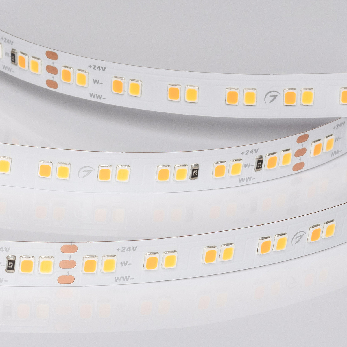 Светодиодная лента UL серии A160, открытая. Светодиоды 2835, 160 шт/м (800 шт на 5 м), белая плата, ширина 10 мм, скотч 3M. Цвет MIX ДНЕВНОЙ 4000 K + ТЁПЛЫЙ 2400 K. Индекс цветопередачи CRI>90, угол 120°. Питание 24В, мощность 12 Вт/м (60 Вт на 5 м). Размеры 5000x10x1.2 мм. Мин. отрезок 100 мм, 16 светодиодов. Цена за 1 м. Рекомендуется установка на профиль.Другие модели серии