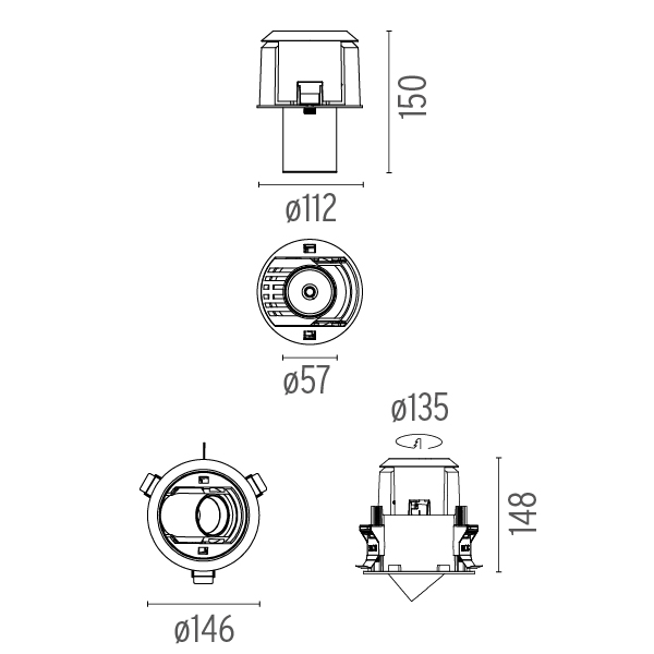 ![]() | 03.0742.40 | Johnny 120 Round 1L – Recessed Universal Frame White |