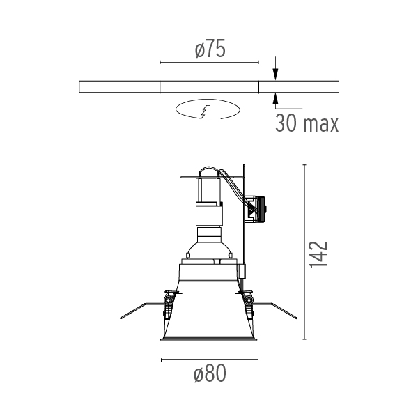 | Вырезное отверстие: | 75 мм |