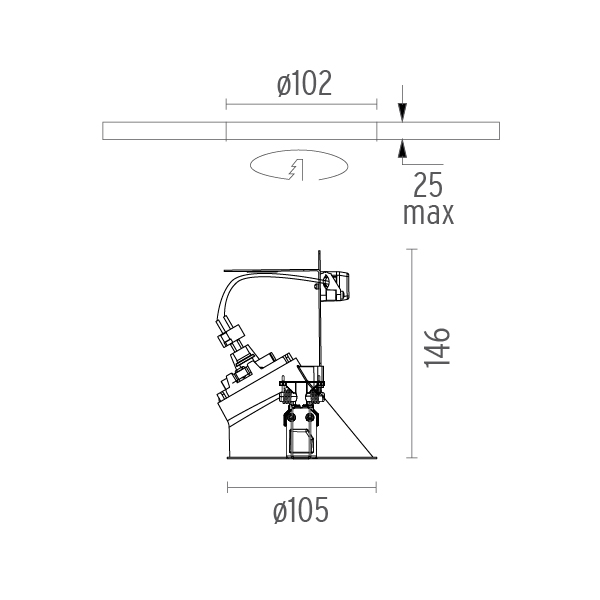 | Вырезное отверстие: | 102 мм |