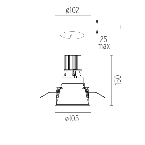 | Вырезное отверстие: | 102 мм |