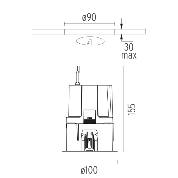 | Вырезное отверстие: | 90 мм |