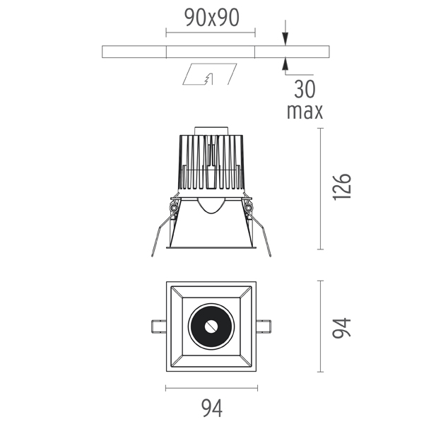 | Вырезное отверстие: | 90x90 мм |