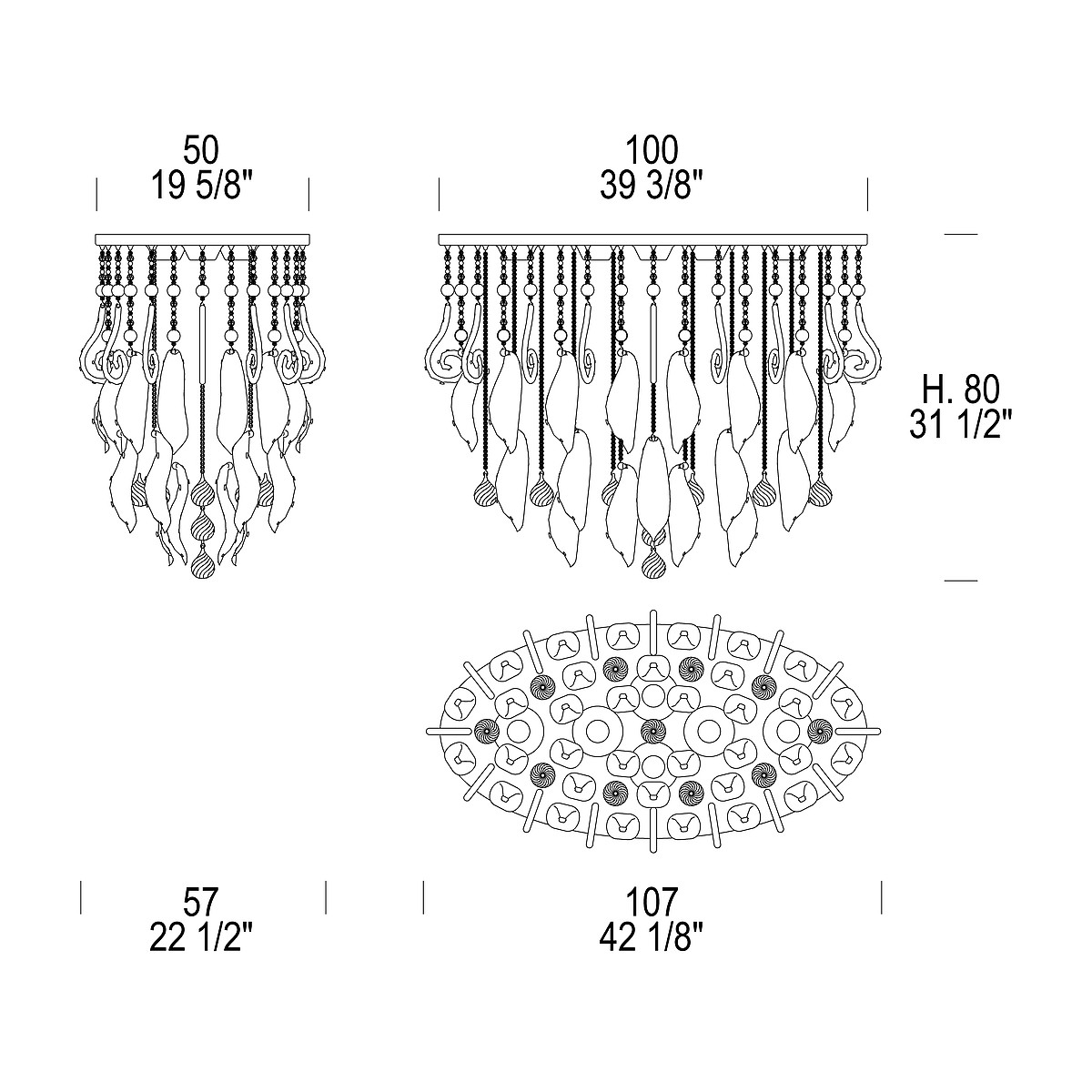 Люстра Leucos ELYSEE PL 100 CEILING TRANSPARENT LEAF 0000408