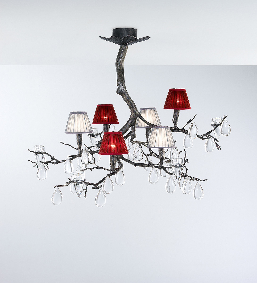 Варианты покрытия металлической части светильника: скульптурная бронза, медь, золото, золото с белой патиной, серебро с белой патиной, серебро, свинец, палладий, чёрный.