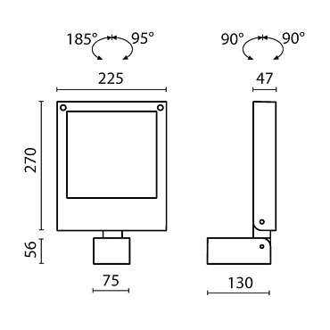 | Угол поворота (горизонтальная ось): | 180° |