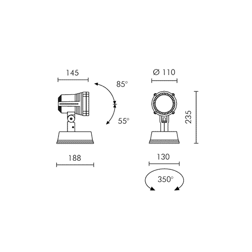 | Угол поворота (вертикальная ось): | 350° |