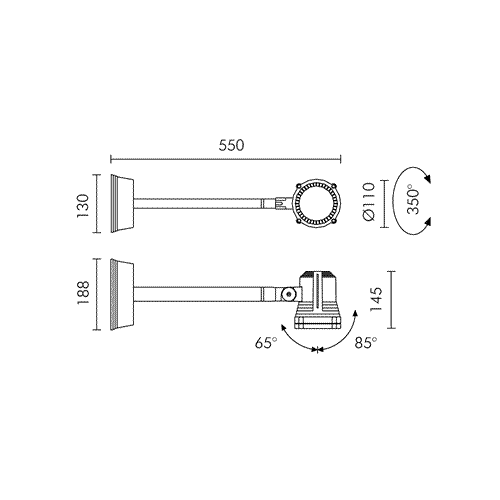| Угол поворота (вертикальная ось): | 350° |