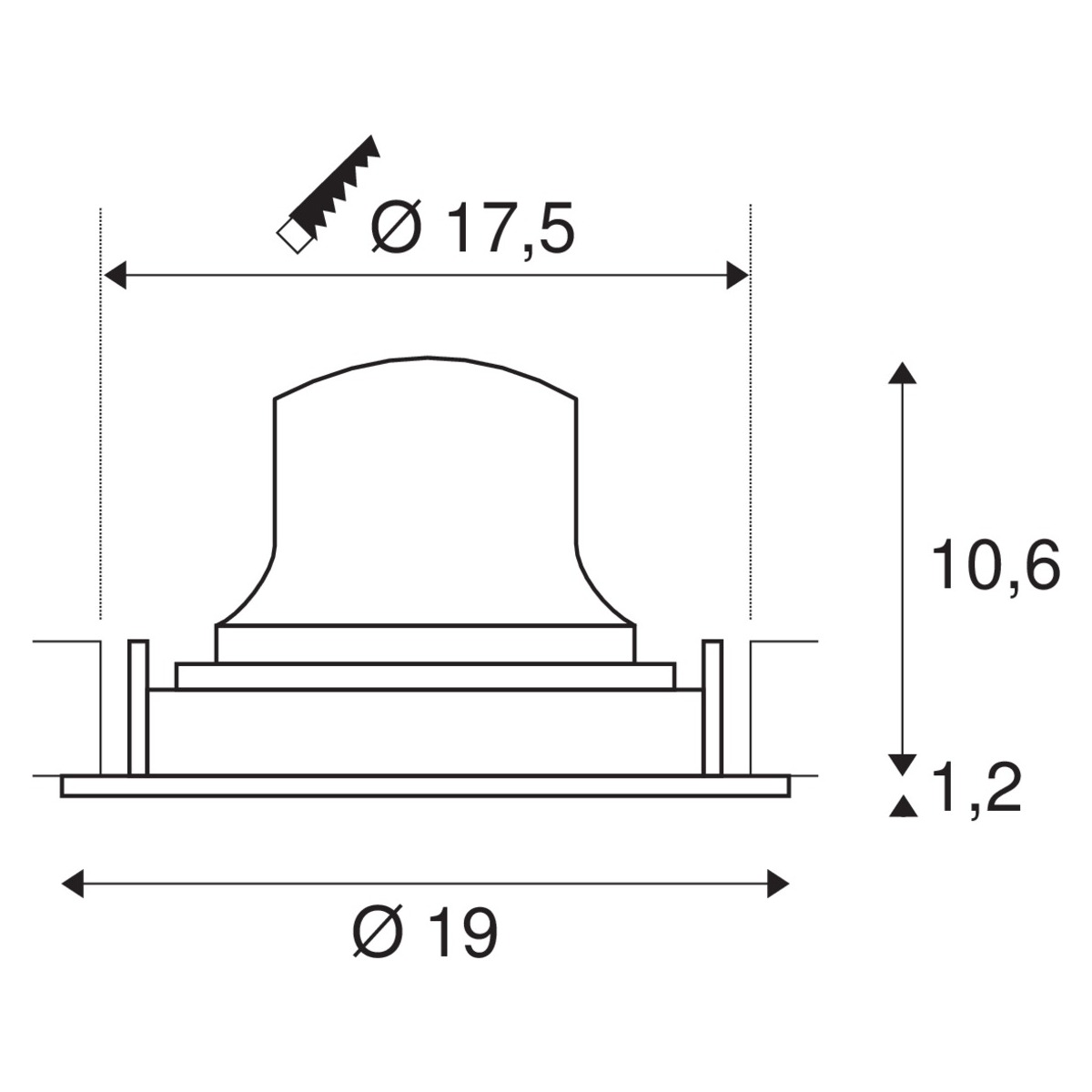 | Вырезное отверстие: | 175 мм |