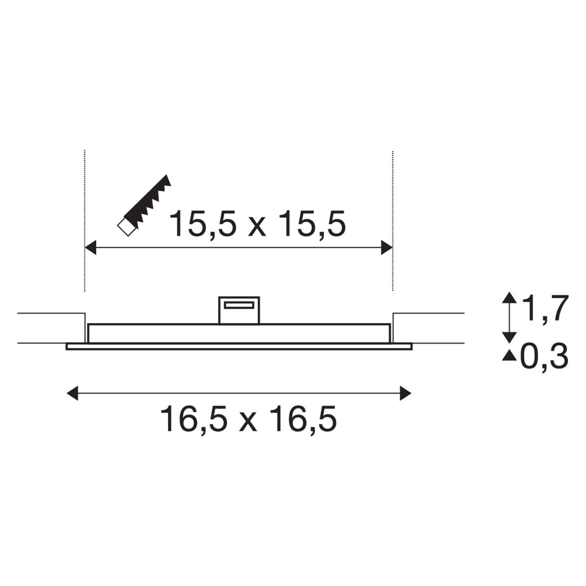 | Вырезное отверстие: | 155x155 мм |