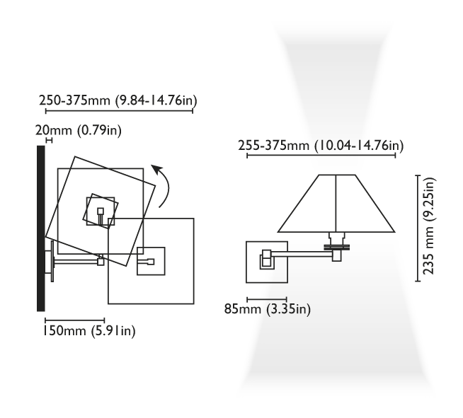 | Габаритные размеры (Д/В): | 250 — 375/235 мм |