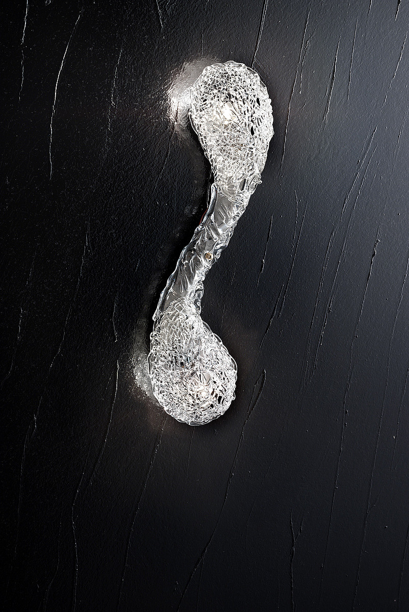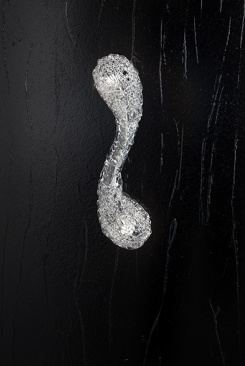 Светильник сделан из прозрачного стекла. Металлические детали могут иметь разные варианты отделки: хром, чёрный никель, лакированный белый.