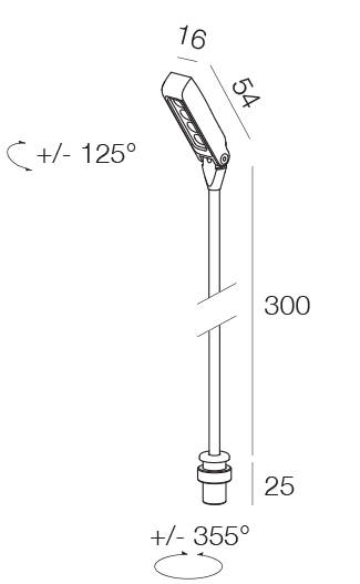 | Угол поворота (вертикальная ось): | 355° |