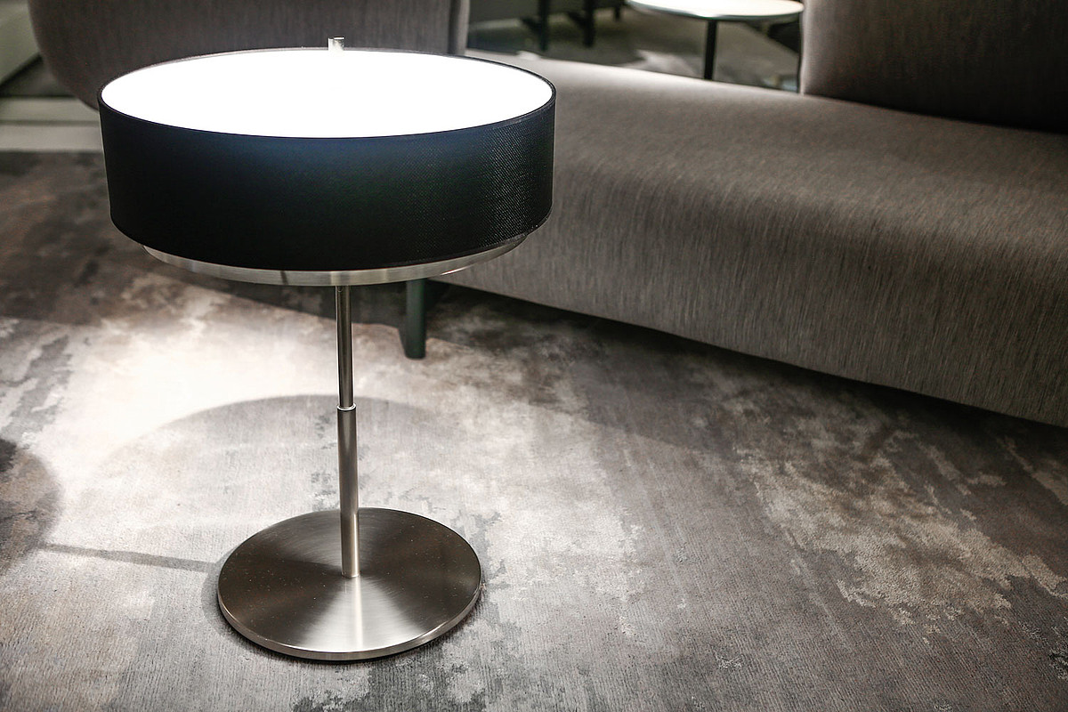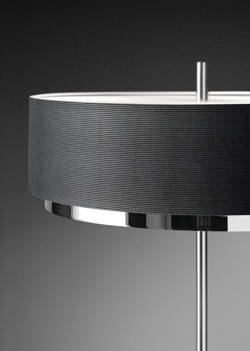 Возможные варианты расцветки и отделки светильника: никелированный или хромированный с чёрным, белым или серым абажуром.