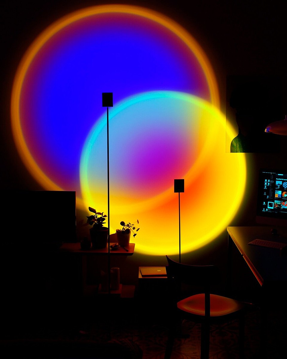 Светильник может создавать один из двух вариантов освещения: закатный красный или глубокий синий.