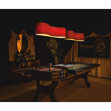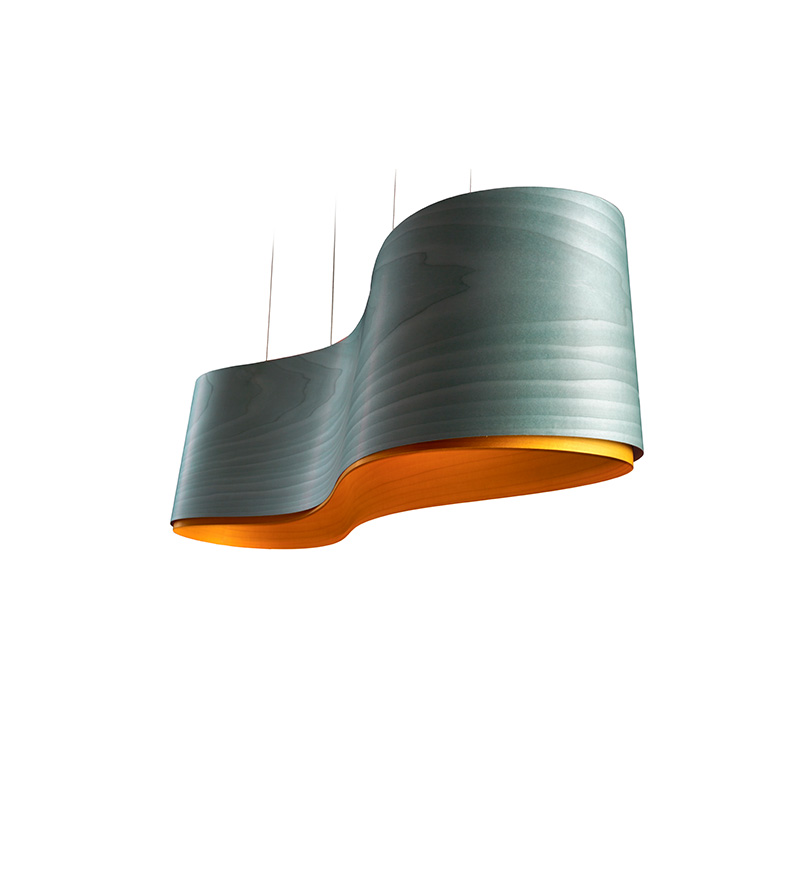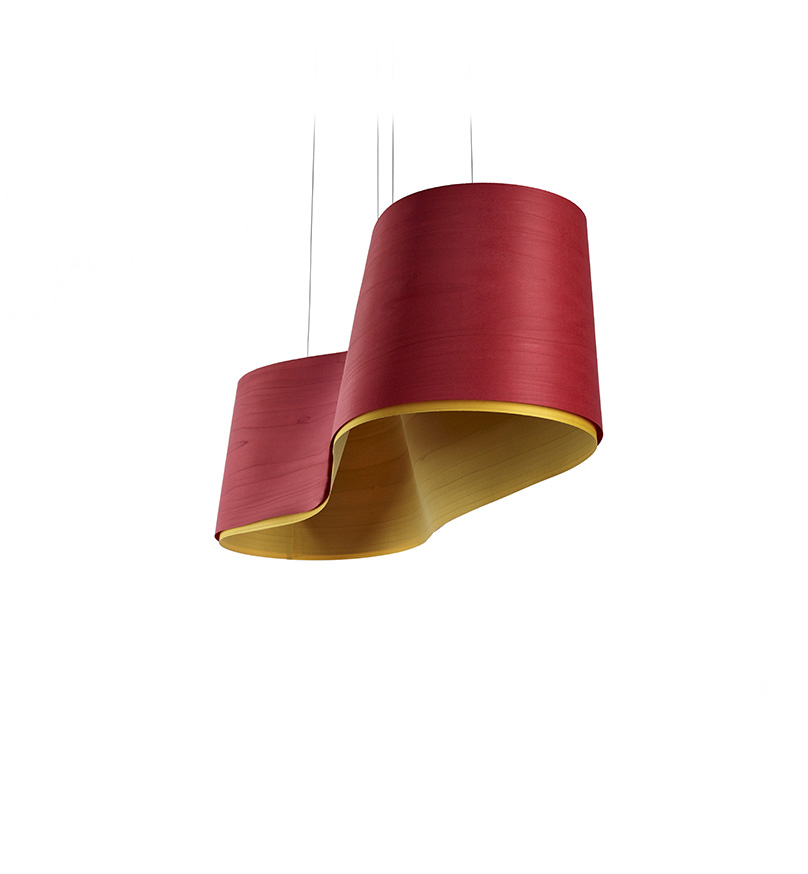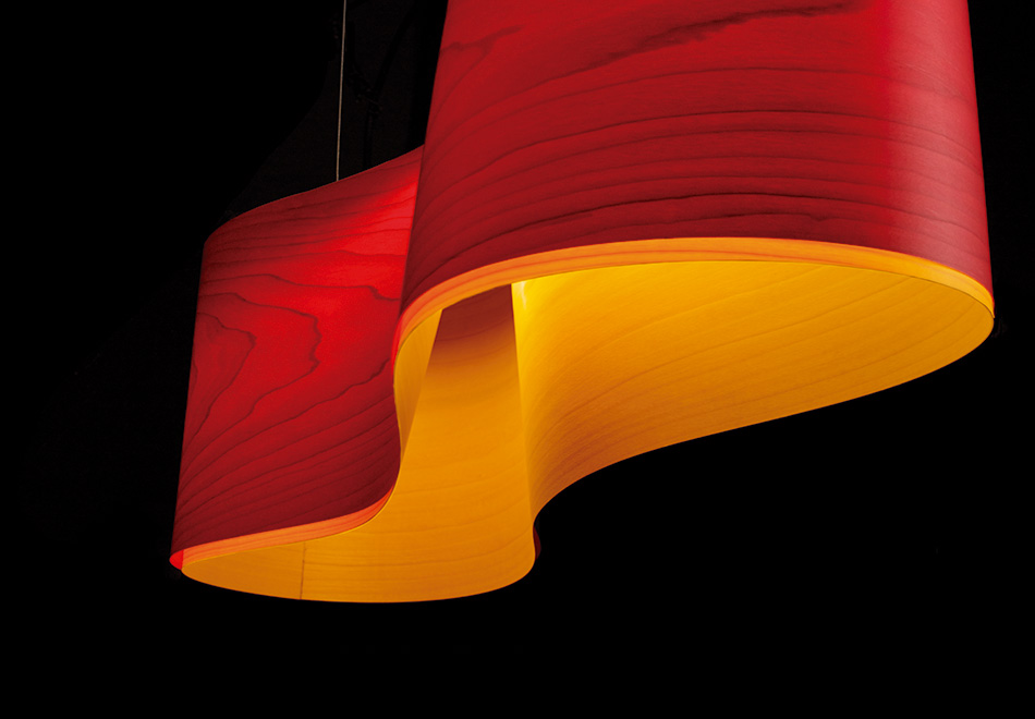 Варианты расцветки абажура снаружи и внутри: красный/жёлтый, бирюзовый/жёлтый, синий/жёлтый, вишнёвое дерево/белый.