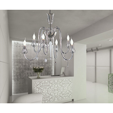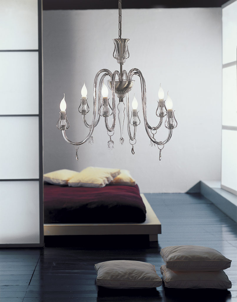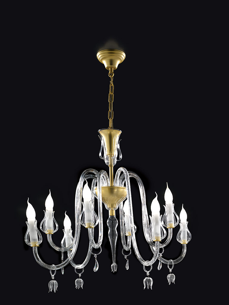 Варианты расцветки светильника: прозрачный, янтарно-жёлтый, дымчатый. Отделка основания светильника может быть шлифованной серебряной или матовой золотой.